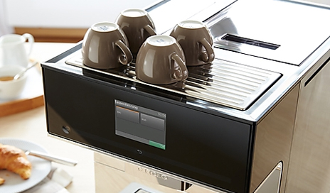 Zintegrowana podgrzewana płyta do filiżanek w Miele CM 7 oferuje szczególny komfort. Podgrzane filiżanki są w każdej chwili gotowe do użycia, ponieważ tylko kawa o właściwej temperaturze zapewnia optymalną przyjemność smaku. Dopiero wtedy może się rozwinąć aromat i utworzyć cudowna pianka. Płyta do podgrzewania filiżanek jest również łatwa do czyszczenia. |